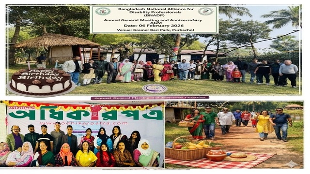 বাংলাদেশ ন্যাশনাল অ্যালায়েন্স ফর ডিজঅ্যাবিলিটি প্রফেশনালস (BNADP)-এর তৃতীয় বার্ষিক সাধারণ সভায় গঠিত হলো নতুন নেতৃত্ব। প্রতিবন্ধী ব্যক্তিদের অধিকার, পেশাদারিত্ব ও অন্তর্ভুক্তিমূলক বাংলাদেশের লক্ষ্যে এই নতুন যাত্রার পূর্ণ প্রতিবেদন।